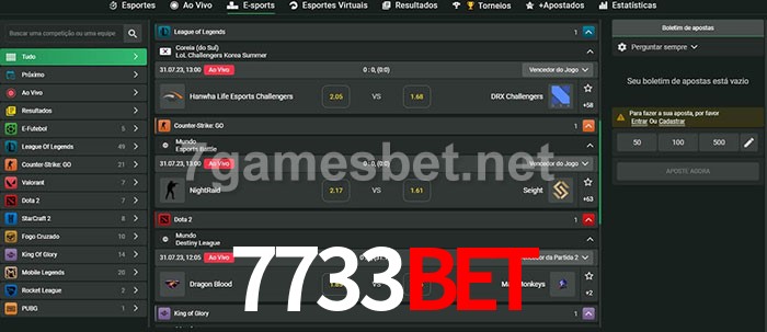 O 7733bet oferece uma grande seleção de opções de apostas em e-sports com probabilidades competitivas